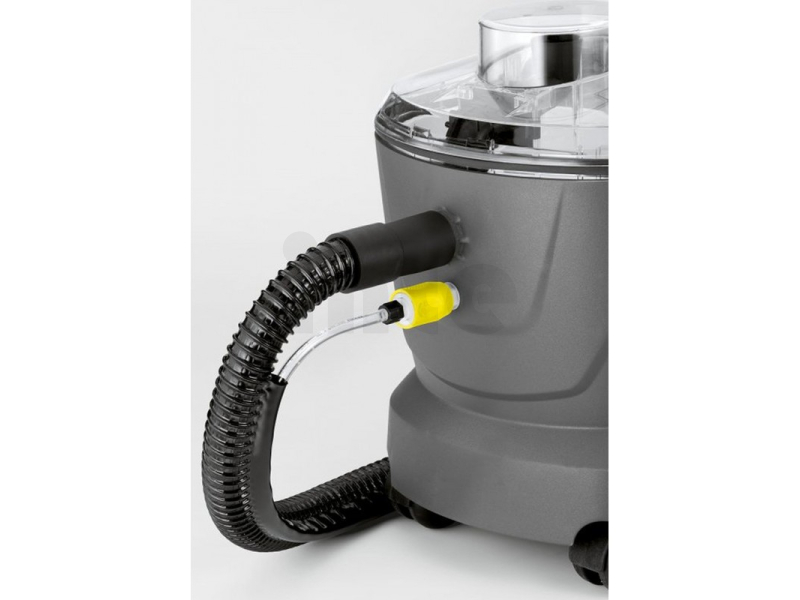 Nový inovovaný model čističe koberců a čalounění KÄRCHER Puzzi 10/1. Pro střední plochy pro živnostenské použití i pro použití v domácnostech. Nádrž na čistou vodu s filtrační vložkou umožňuje velké pracovní intervaly a chrání čerpadlo před znečištěním. Kompaktní a robustní kryt z plastu - nárazuvzdorný, odolný proti prasknutí, snadné přenášení. Dvě velká kola pro bezproblémovou přepravu a dvě malá řídící kolečka pro velkou pohyblivost stroje. Tlačítka pro nástřik a odsávání se nachází na horním díle stroje - bezproblémová obsluha. Snadno snímatelný, průhledný sací kryt pro optickou kontrolu. Vyjímatelný modul čerpadlo/turbína uložený v gumovém obložení. Nádrž na špinavou vodu s objemem 9 l. snadno vyjímatelná. Zbytková vlhkost 3, %.