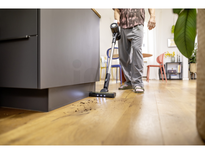 Výkonný BLDC bezkartáčový motor v kombinaci s elektricky poháněným turbo kartáčem zaručuje vynikající sběr prachu, vlasů i zvířecích chlupů ze všech typů podlah včetně koberců a tvrdých povrchů. LED osvětlení na podlahové hubici odhalí i jemné nečistoty v tmavých rozích a pod nábytkem, zatímco otočný kloub o 180° umožňuje snadné manévrování.