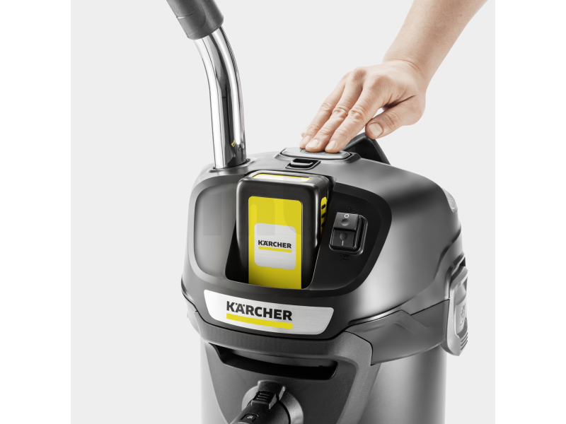 O stabilní výkon se stará výkonný filtrační systém s plochým skládaným nehořlavým filtrem a kovovým filtrem na hrubé nečistoty, který minimalizuje víření prachu. Díky technologii Kärcher ReBoost Filter Cleaning lze filtr rychle a účinně vyčistit stiskem jednoho tlačítka, čímž se okamžitě obnoví sací výkon.