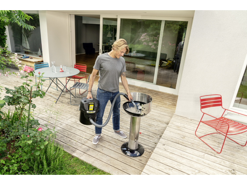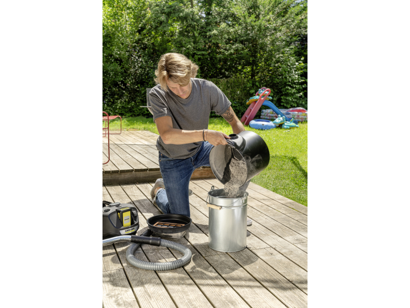 Bezpečnost při vysávání popela zajišťuje konstrukce z nehořlavých materiálů – 14litrová kovová nádoba a kovová sací hadice s pláštěm. Vysavač si poradí jak s jemným popelem, tak s hrubšími nečistotami, a to i v hůře přístupných místech díky praktické zkosené hubici.