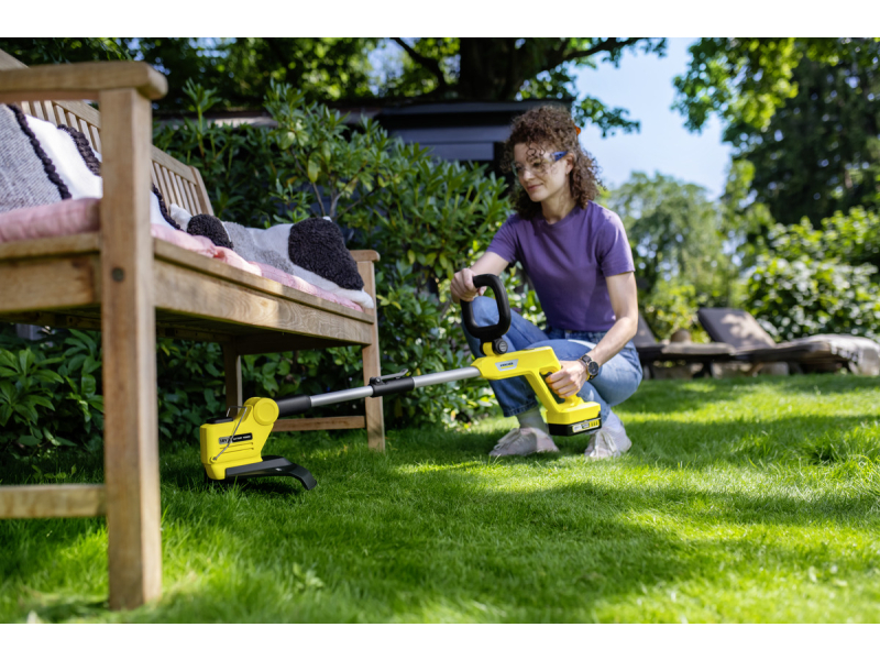 Skládací ochranný kryt rostlin chrání stromy, květiny i další porost před poškozením. Vyžínač je součástí 18V bateriové platformy Kärcher Battery Power, což umožňuje sdílení baterie s dalšími kompatibilními zahradními nástroji Kärcher.