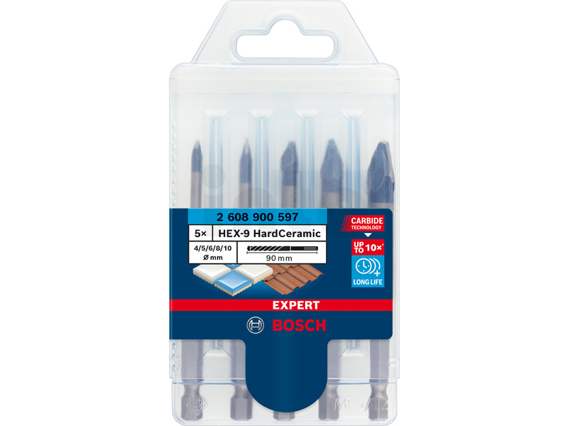 BOSCH 5dílná sada vrtáků do dlažby EXPERT HEX-9 HardCeramic 4/5/6/8/10 mm 2608900597