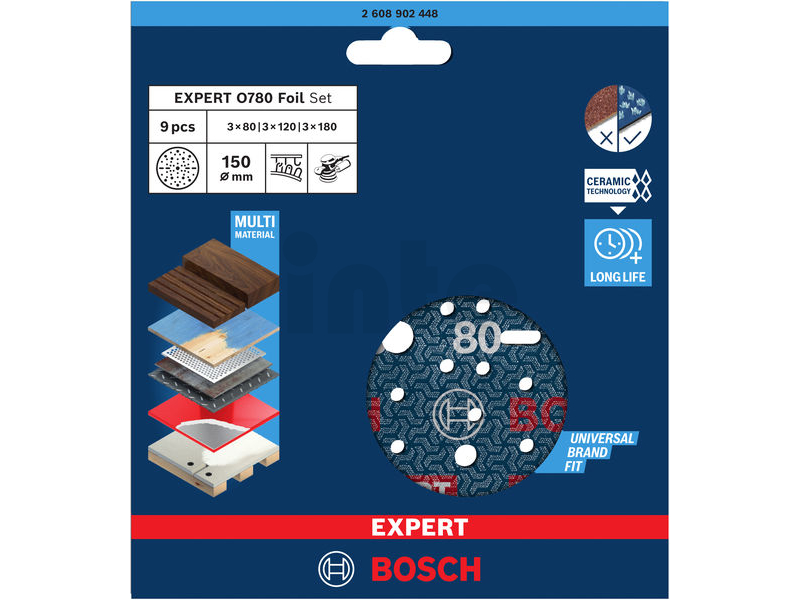 BOSCH 9dílná sada brusných kotoučů EXPERT O780 s fólií, 150 mm, G80 (3×); G120 (3×); G180 (3×) 2608902448