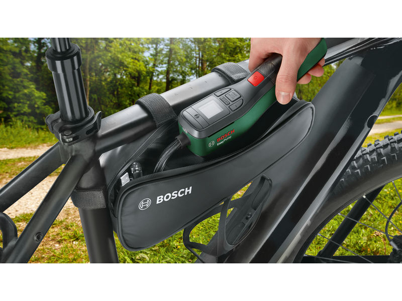 Akumulátorová hustilka EasyPump; Kompaktní a praktická: nafukování pneumatik u jízdních kol a míčů doma i na cestách.; Nafukování až do 10,3 baru s funkcí průběžného měření a automatického zastavení; Ideální na nafukování pneumatik (na automobil, motocykl, jízdní kolo), míčů i menšího vybavení na vodní sporty; Vše připraveno po ruce: různé adaptéry úhledně uložené v rukojeti; Intuitivní a praktická: jednoduše ovladatelná, ergonomická, se subtilní konstrukcí a velkým displejem; Integrovaný akumulátor a nabíjení přes USB-C®, jasné nasvícení LED světlem; Galuskový ventil; Jehla na nafukování míčů; Objemový adaptér; Svorka pumpy na ventil pneumatiky; Kabel USB; Brašna na rám kola