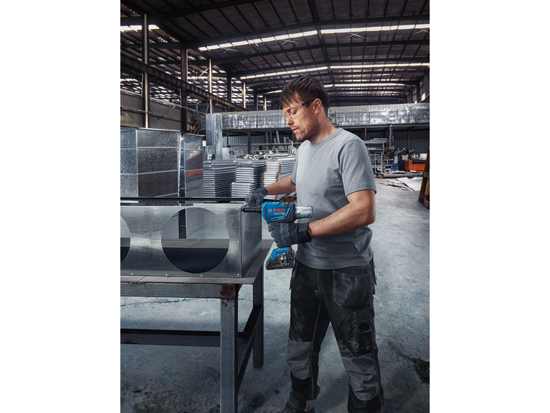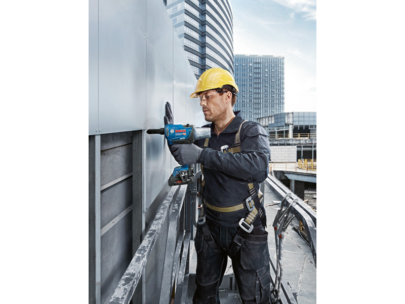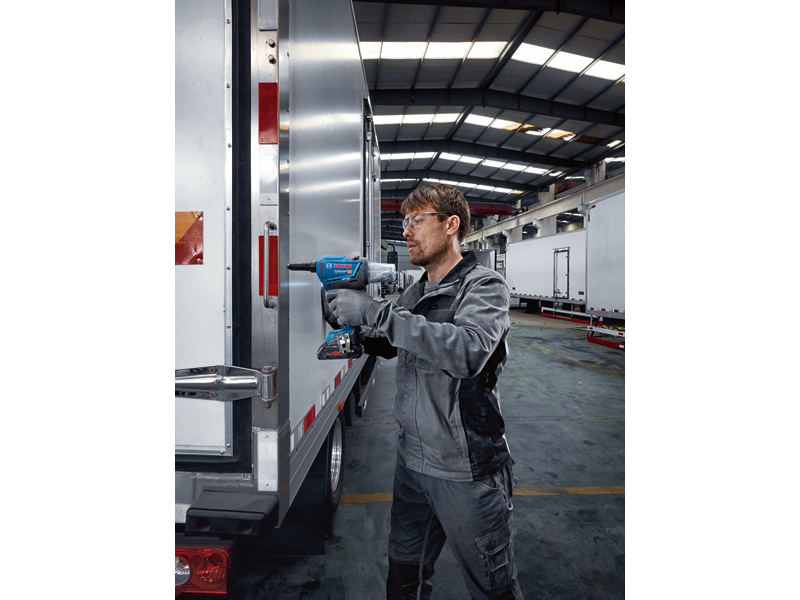 Akumulátorová nýtovací pistole GRG 18V-16 C, Výkonná akumulátorová nýtovací pistole GRG 18V-16 C Professional nabízí neomezenou svobodu pohybu bez kabelů a vybavení navíc, které se pojí s pneumatickým nářadím. S jednodušším sestavením a menší údržbou je zároveň i cenově výhodné. Tato nýtovací pistole se pyšní stejnou silou jako pneumatické nářadí a snadno nastřeluje nerezové nýty o průměru 3 až 6,4 mm při náročných pracích – a jediné nabití akumulátoru stačí na aplikaci více než 1 000 nýtů. Uživatelé si mohou zvolit automatický nebo ruční provoz podle svých osobních preferencí. Konektivita s aplikací Bosch zajišťuje méně časté prostoje a dodržování plánu údržby a provozu nářadí. Tato výkonná nýtovací pistole zajišťuje špičkové výsledky, flexibilitu a rychlost při výrobě originální dílů, například v oblasti vzduchotechniky nebo automobilového průmyslu, i při stavebních a montážních pracích. Nastřeluje nýty o průměru 3 až 6,4 mm do celé škály kombinací materiálů. Kartonová krabice