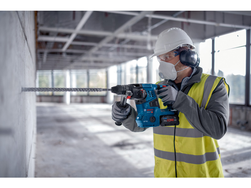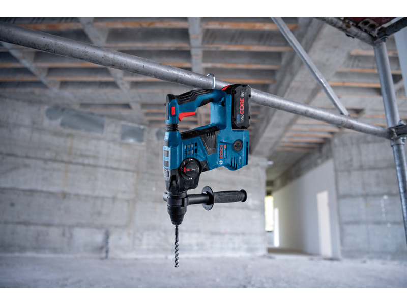 Akumulátorové vrtací kladivo s SDS plus GBH 18V-28 C, Akumulátorové nářadí GBH 18V-28 C Professional od firmy Bosch je určeno pro všechny, kdo touží po výkonu síťového nářadí se svobodou bez kabelů. Toto vrtací kladivo se vyznačuje výkonným bezuhlíkovým motorem, který se svým osvědčeným příklepovým mechanismem přináší energii až 3,3 J. Snadno čitelný displej HMI zobrazuje stav nářadí a umožňuje uživateli výběr ze tří různých pracovních režimů (Auto, Favorite, Soft) pro dokonalou kontrolu při každé práci. S nainstalovaným volitelným modulem como (GCY 42) lze nářadí GBH 18V-28 C připojit k aplikaci Bosch Toolbox a dále si upravovat nastavení podle svých potřeb. Vibration Control, KickBack Control a kompatibilita s GDE 18V-16 pro bezprašné vrtání zajišťuje komplexní nabídku prvků na ochranu uživatele. Toto vrtací kladivo je ideální na příklepové vrtání do betonu, kamene a zdiva. Je kompatibilní se všemi akumulátory a nabíječkami v profesionálním 18V systému Bosch. Pro bezprašné a bezpečnější pracovní prostředí lze k nářadí snadno připojit vysavač GDE 18V-16 Professional. Vyznačuje se rovněž háčkem na ukládání a světlem LED. Kartonový box; Přídavná rukojeť ( 2 602 025 191); Hloubkový doraz (1 613 001 009); Čisticí tkanina (1 619 200 413); Tuba s mazacím tukem (číslo náhradního dílu 1 615 430 010)