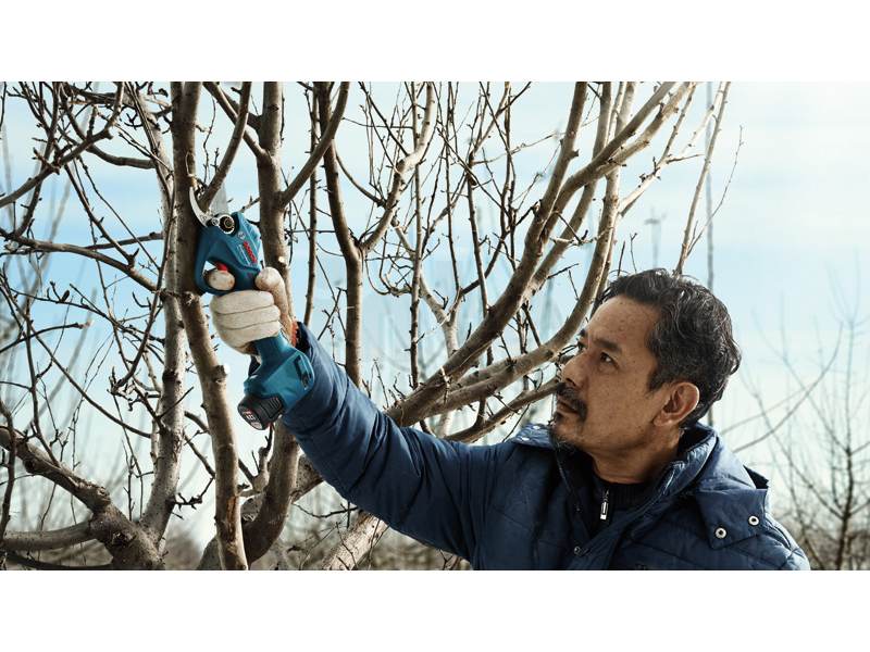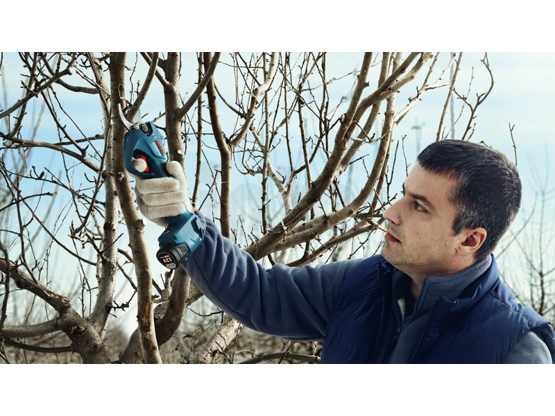 Akumulátorové zahradní nůžky Pro Pruner, Okuste nový rozměr efektivity. Akumulátorový Pro Pruner zajistí bleskurychlé a profesionální prořezání ovocných stromů. Užívejte si menší námahy a rychlých výsledků: V porovnání s ručními nůžkami lze Pro Pruner snadno ovládat s výrazně menší námahou díky vysoce 12V efektivnímu bezuhlíkovému motoru.