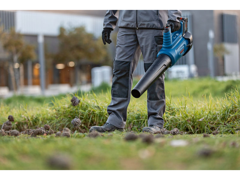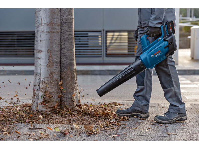 Akumulátorový fukar na listí GBL 18V-750, GBL 18V-750 Professional s bezuhlíkovým motorem BITURBO a axiálním ventilátorem poskytuje silný výkon s objemovým průtokem 780 m³/h a rychlostí vzduchu až 198 km/h. Jeho variabilní regulace otáček umožňuje plnou kontrolu při práci: optimální volbu výkonu, úroveň hluku a dobu chodu pro daný úkol. Jeho dobře vyvážený, ergonomický design a nízká hmotnost podporují práci bez námahy. GBL 18V-750 Professional je akumulátorové řešení pro foukání listí. Je kompatibilní se všemi akumulátory a nabíječkami ze systému Bosch Professional 18V. Je také kompatibilní s AMPShare, aliancí akumulátorů různých značek. Kartonová krabice; Tryska (F 016 F05 897)