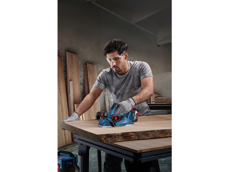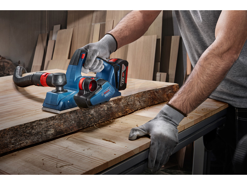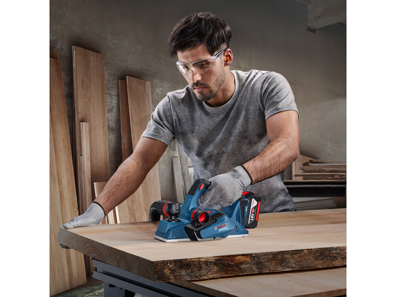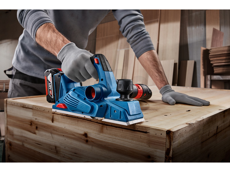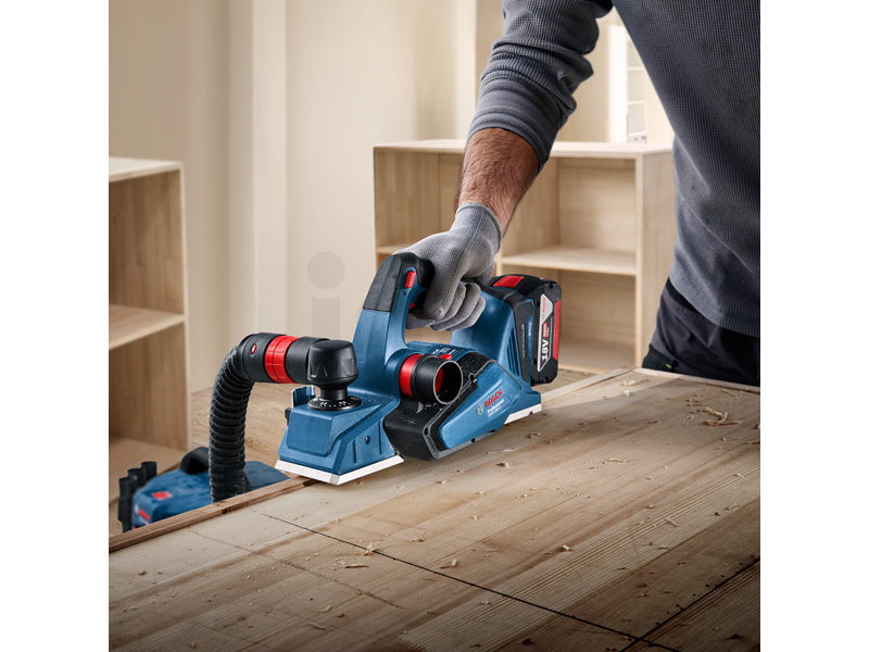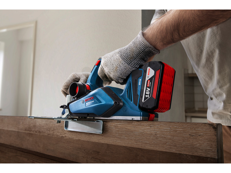 Akumulátorový hoblík GHO 185-LI, GHO 185-LI Professional zaručuje díky své přesné konstrukci konzistentně rovnou plochu v průběhu celého pracovního procesu pro dokonalejší spojování. Akumulátorový hoblík umožňuje snadné hoblování o hloubce 2,6 mm na jakémkoli dřevěném materiálu. Jeho výkon je srovnatelný s výkonem síťového nářadí. Je vybaven vylepšeným odsáváním prachu přes příslušný otvor s dvojitým sekáním a snadnou výměnou nože bez zarovnání pro snadné dosažení konzistentní roviny. GHO 185-LI Professional je vhodná na hoblování přírodních i opracovaných dřevěných materiálů a na odstraňování materiálů pro vytvoření rovného povrchu. Vodicí konzola (1 619 PB4 338); Sáček na prach (1 619 PC1 532); Montážní klíč (1 619 PC1 531); Kartonový box