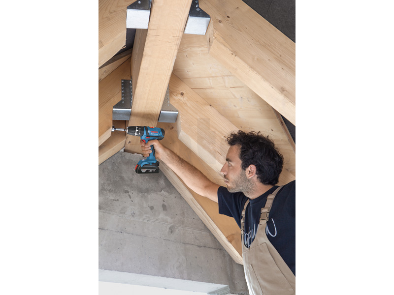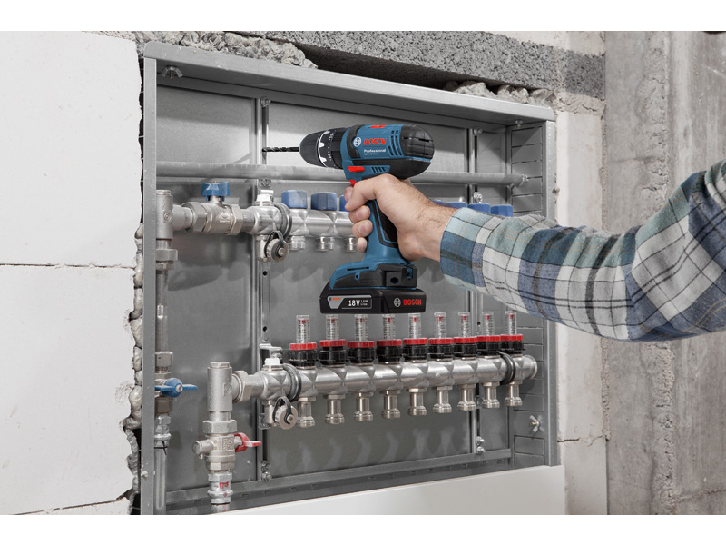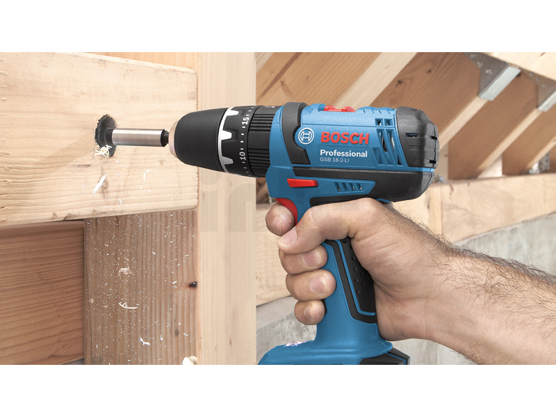 Akumulátorový kombinovaný šroubovák GSB 18-2-LI, Nejlehčí a nejkompaktnější akumulátorový vrtací šroubovák v této třídě, Nejmenší hmotnost: pouze 1,4 kg pro perfektní manipulaci a práci bez únavy, Nově vyvinutá dvoustupňová planetová převodovka pro výkonné šroubování a vrtání do dřeva (30 mm) a kovu (10 mm) a dále vrtání do zdiva (10 mm) s příklepem, Se 187 mm nejkratší konstrukce v této třídě pro optimální manipulaci především při vrtání a šroubování nad hlavou a na stísněných místech,