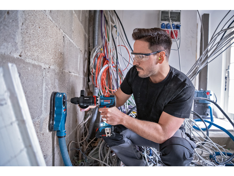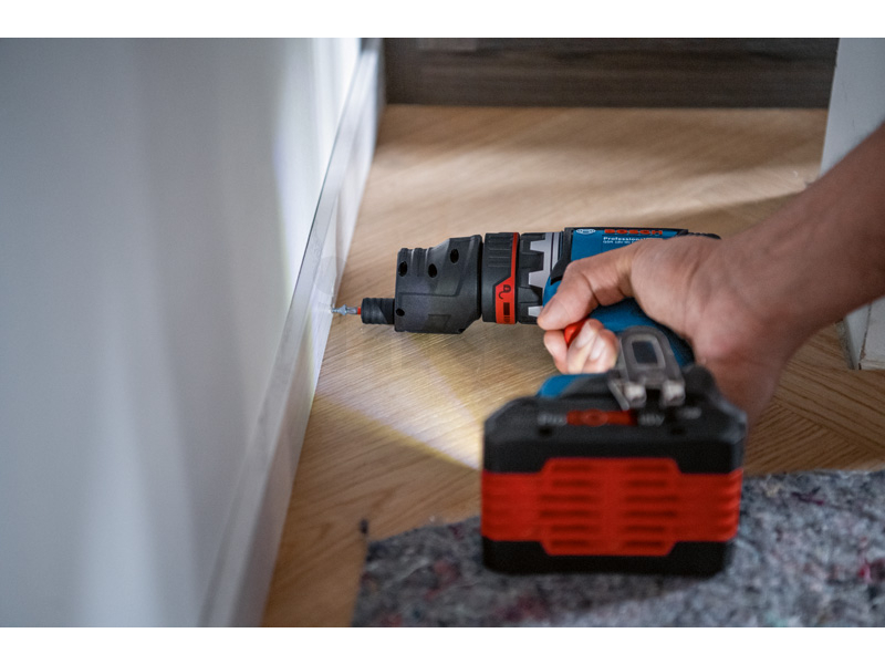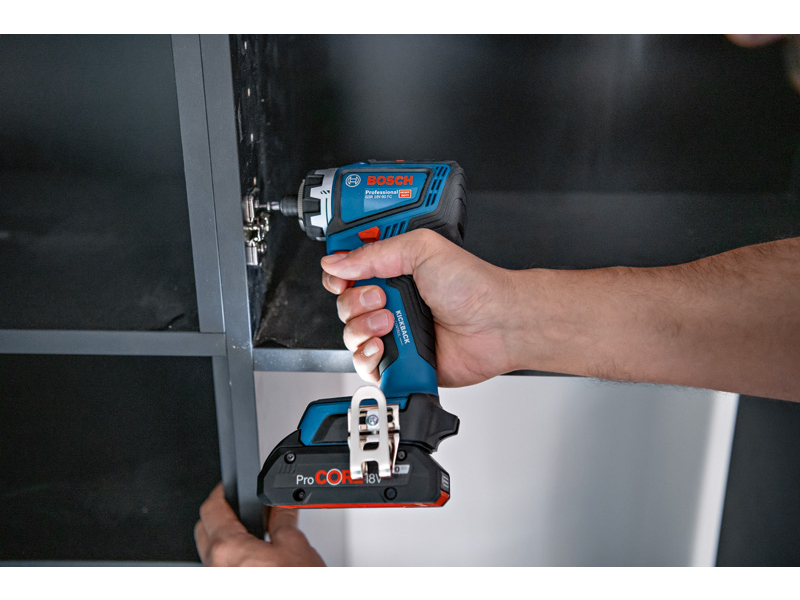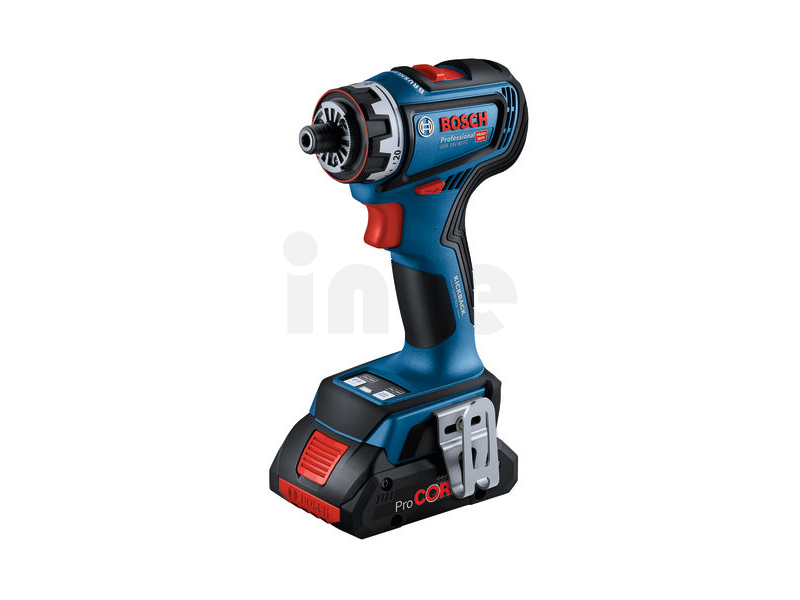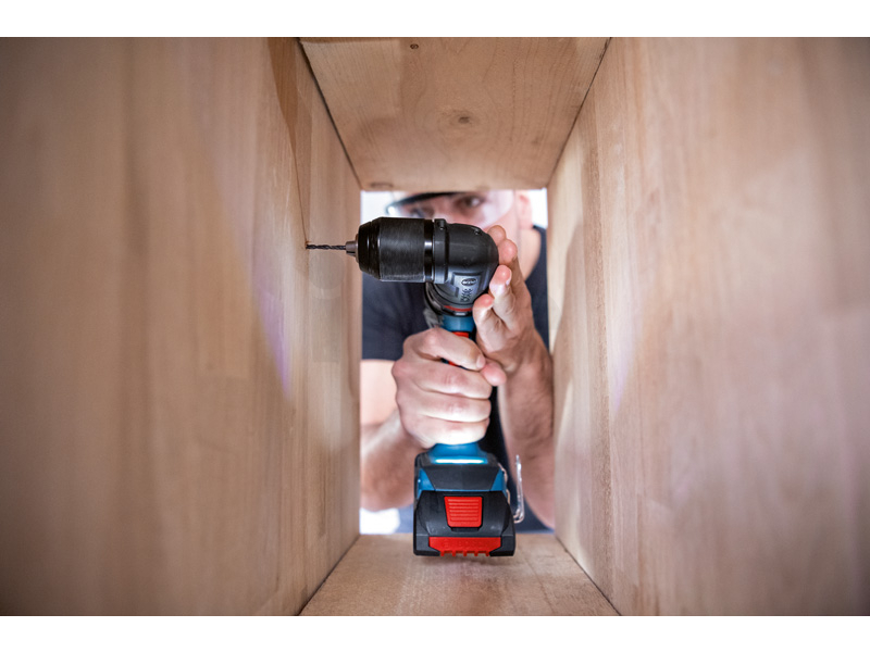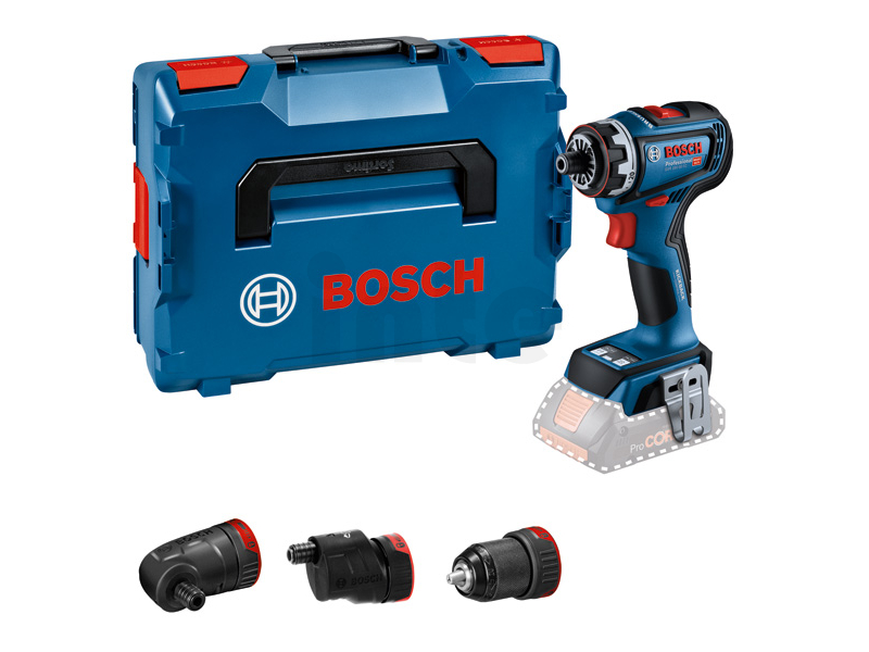 Akumulátorový vrtací šroubovák GSR 18V-90 FC, Výkonné GSR 18V-90 FC Professional je součástí systému Bosch Professional FlexiClick System, který vás připraví na všechny výzvy na pracovišti: Excentrický nástavec umožňuje práci blízko u rohů a stěn a pravoúhlý nástavec zase z vrtacího šroubováku udělá úhlovou vrtačku. Tyto nástavce lze nastavit do 16 různých poloh v úhlu 360° bez odepínání z nářadí. Po připojení jedinečného příklepového nástavce GFA 18-H se nářadí přemění na plnohodnotné vrtací kladivo SDS plus připravené na bezpracné příklepové vrtání do betonu až do Ø 10 mm. S délkou hlavy pouhých 136 mm a tuhým krouticím momentem max. 64 Nm máte po ruce vysoce kompaktní a silné nářadí. Systém Bosch Professional FlexiClick System – dokonalé vybavení na profesionální práci. Je perfektní na všechny způsoby šroubování a vrtání do dřeva či kovu a v kombinaci s GFA 18-H i betonu, zdiva a kamene. Kovové sklíčidlo GFA 18-M Professional (1 600 A01 3P6); Excentrický nástavec GFA 18-E Professional (1 600 A00 1SJ); Úhlový nástavec GFA 18-W Professional (1 600 A01 3P7); L-BOXX 136 (1 600 A01 2G0); Vložka pro L-BOXX 136