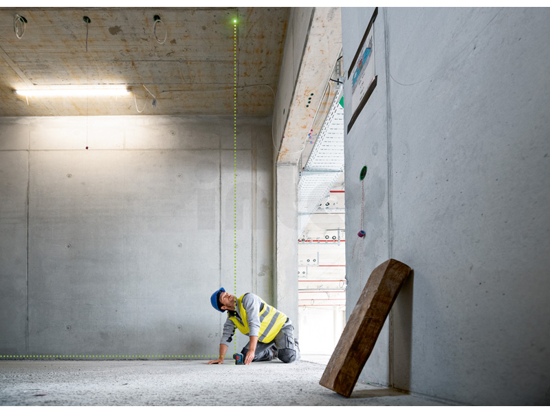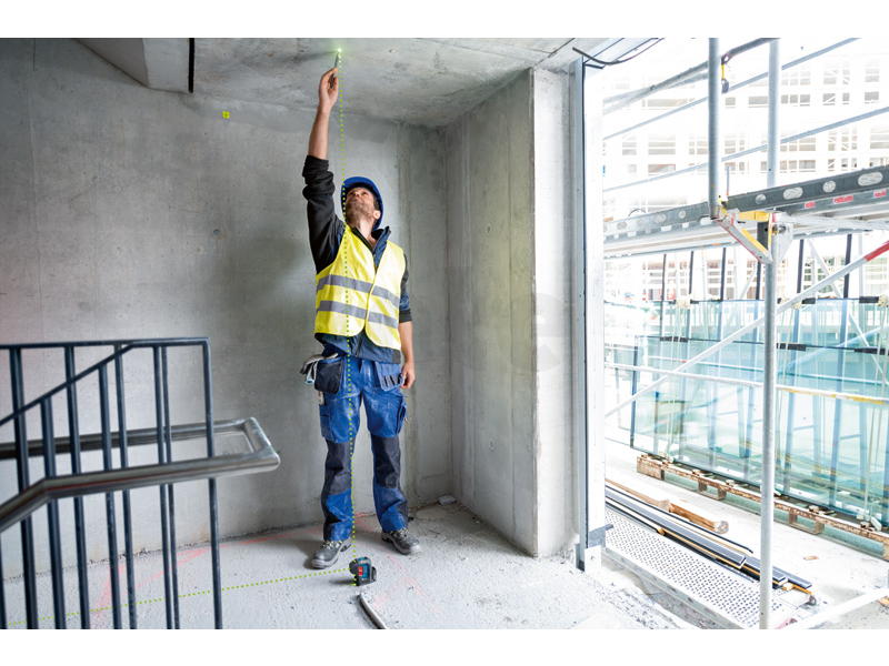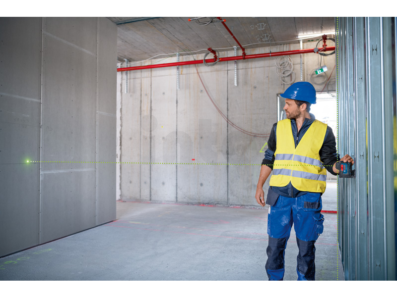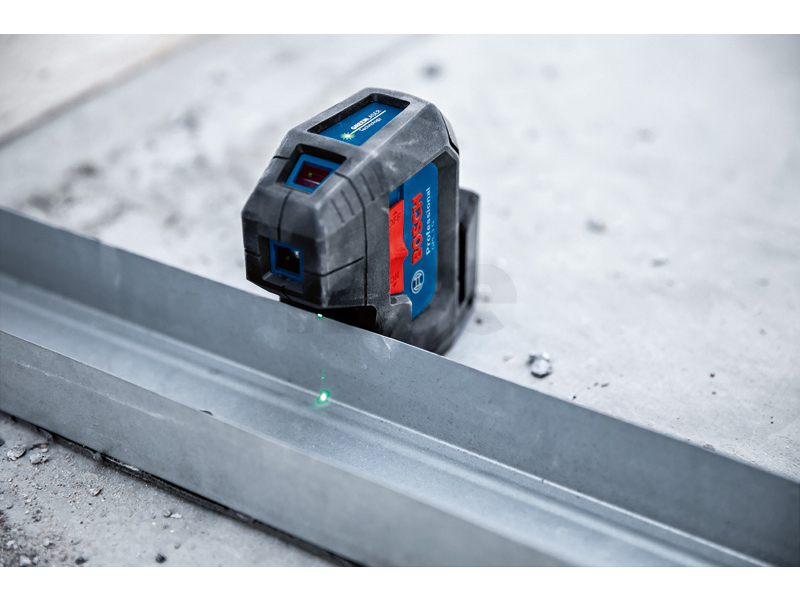 Bodový laser GPL 3 G, Tříbodový laser GPL 3 G Professional se pyšní houževnatostí a malou konstrukcí, a je tak ideální na stavbu sádrokartonových stěn. Zelené laserové body poskytují až čtyřikrát lepší viditelnost oproti červeným bodům. GPL 3 Professional se svým pogumovaným krytem, zapuštěným sklíčkem a stupni krytí IP 65 proti prachu a stříkající vodě odolá i drsným podmínkám na pracovišti. Tento tříbodový laser je vybaven integrovaným otočným držákem se silnými magnety pro rychlé a bezpečné upevnění nářadí a pohodlnou přepravu. GPL 3 G Professional je ideálním pomocníkem na přenos bodů z podlahy na strop, například při instalaci interiérového osvětlení. Dokonale vhodný pro založení konstrukcí pro sádrokarton. Tento tříbodový laser se rovněž pyšní intuitivním rozhraním s dvoupolohovým spínačem: Je-li zapnutý, přístroj se automaticky samoniveluje, je-li vypnutý, zaaretuje se kyvadlo.