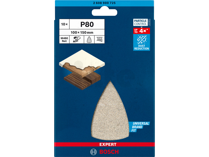 BOSCH Brusná mřížka EXPERT M480 pro multifunkční pily 100 × 150 mm, G 80, 10 ks 2608900725