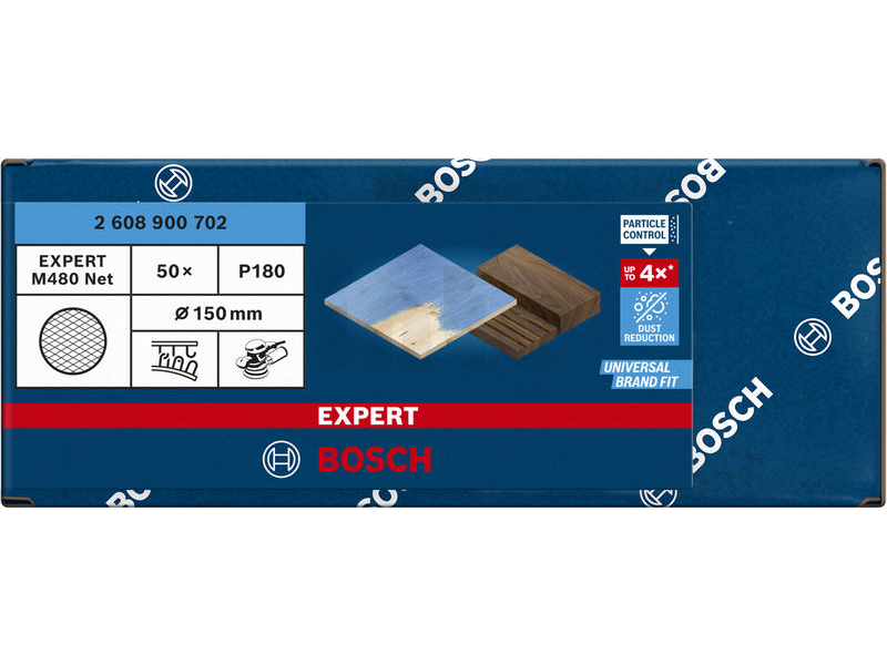 Použití se šetřícími podložkami pro pokročilé snížení prašnosti a efektivní broušení dřeva, nátěrů a sádrokartonu.! Velkým nepřítelem broušení je prach. Zanáší brusný papír a snižuje jeho efektivitu. Zapráší všechno v místnosti a šíří se i dál do domu. Proto jsme přišli s technologií Bosch Particle Control a posunuli jsme snižování prašnosti na novou úroveň. Snížení prašnosti při broušení není snadné, ale našli jsme řešení. Tato brusná mřížka Bosch EXPERT M480 využívá naši technologii Particle Control, která snižuje prašnost na minimum.