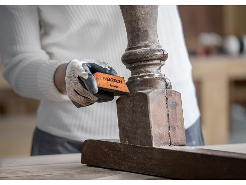 Broušení dřeva i laku a dlouhá životnost! Někdy se ručnímu broušení nic nevyrovná. Problémem je, že běžné brusné papíry se při broušení křivek a hran rychle opotřebují, zanesou nebo polámou. Staré řešení spočívalo v nákupu velkého množství brusných papírů, což vedlo k vysoké spotřebě a plýtvání. Novým řešením jsou brusné pěny s technologií Bosch Surface Structure. Hranaté brusné houby jsou ideální pro broušení rovných povrchů a 90° hran. Brusné houby Bosch EXPERT jsou revolucí v ručním broušení. Jakmile to jednou vyzkoušíte, už nebudete chtít měnit.
