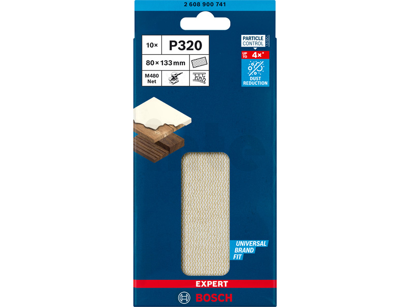 BOSCH Brusné mřížky EXPERT M480 pro vibrační brusky 80 × 133 mm, P320, 10 ks 2608900741