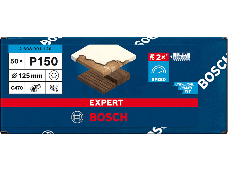 BOSCH Brusné papíry EXPERT C470 s 8 otvory pro excentrické brusky 125 mm, P150, 50 ks 2608901120