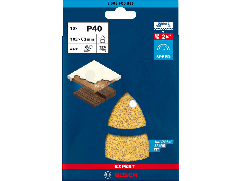 BOSCH Brusný papír EXPERT C470 s 11 otvory pro multifunkční pily 102 × 62 mm, 93 mm, G 40, 10 ks 2608900886