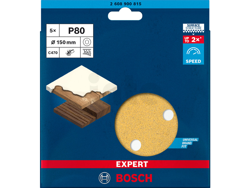 BOSCH Brusný papír EXPERT C470 s 6 otvory pro vibrační brusky 150 mm, G 80, 5 ks 2608900815