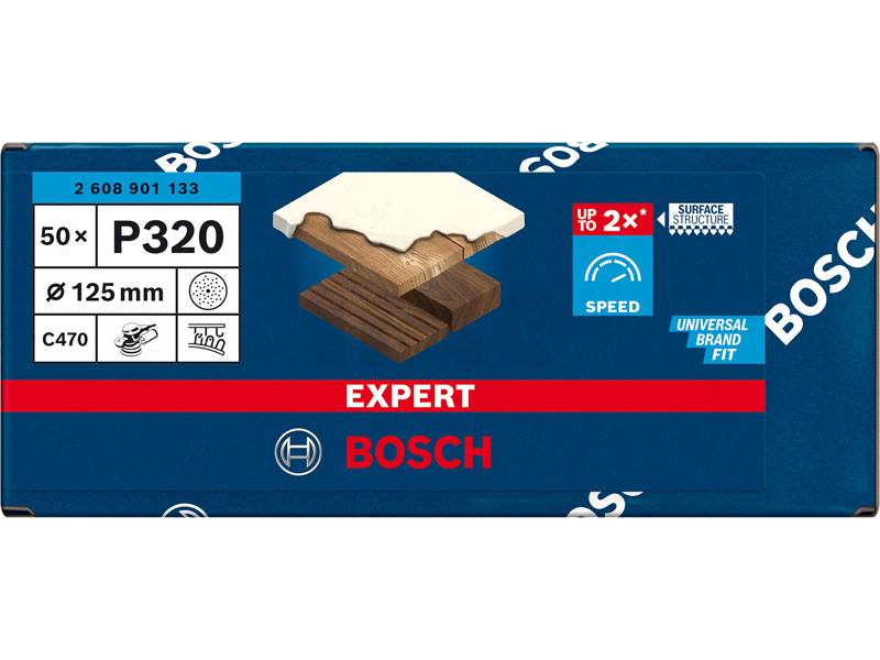 BOSCH Brusný papír EXPERT C470 s více otvory pro vibrační brusky 125 mm, G 320 50 ks 2608901133