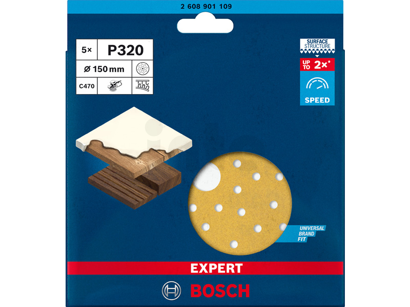 BOSCH Brusný papír EXPERT C470 s více otvory pro vibrační brusky 150 mm, G 320 5 ks 2608901109