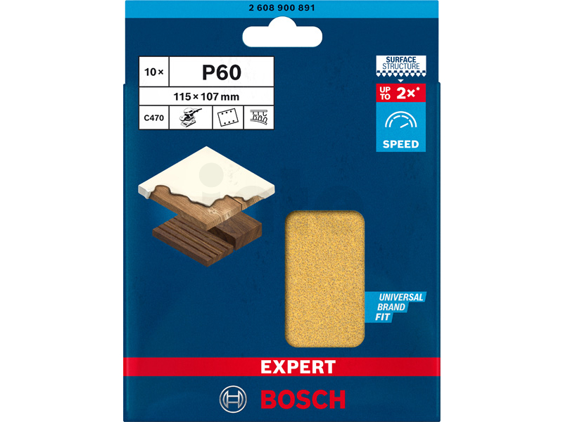 BOSCH Brusný papír EXPERT C470 se 6 otvory pro vibrační brusky 115 × 107 mm, G 60, 10 ks 2608900891