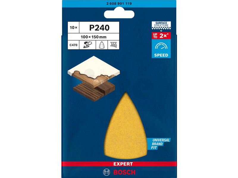 BOSCH Brusný papír EXPERT C470 se 7 otvory pro multifunkční pily 100 × 150 mm, G 240, 10 ks 2608901119