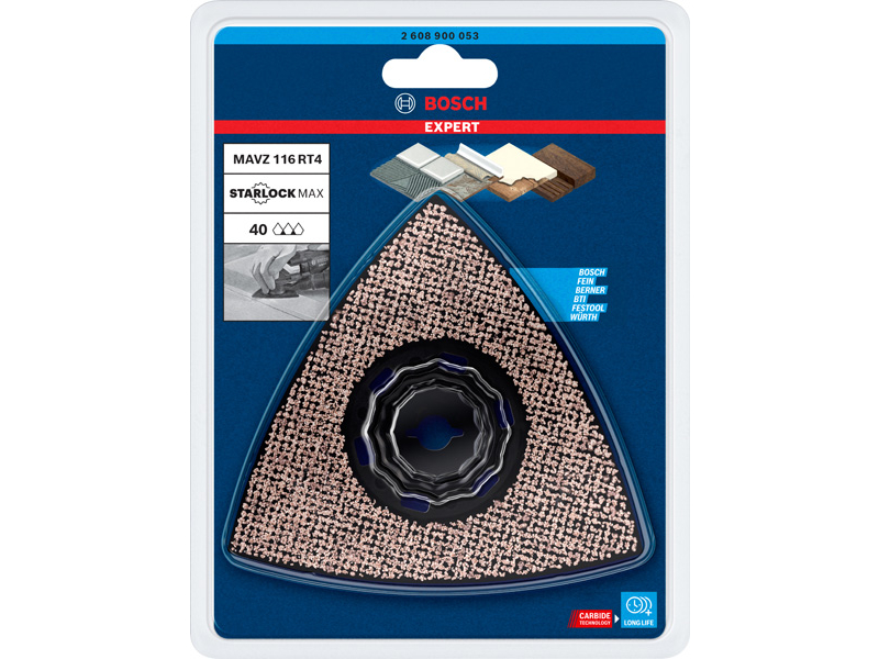 Dlouhá životnost při broušení různých materiálů! Náročné broušení malých ploch kvůli odstranění starého materiálu a přípravě povrchu pro další práci může být běžnou bruskou i ručně velmi těžko proveditelné. I když máte přístup k povrchu, tyto práce zničí brusný papír. S brusným talířem EXPERT Sanding Plate se však můžete dostat do rohů a brousit obtížné materiály pomocí oscilačního multifunkčního nářadí. Hrubá, otevřená zrna RT2 (zrnitost 20) jsou nejlepší pro odstraňování malty za dlaždicemi, pro odstraňování lepidla na koberce nebo pro rašplování dřeva. RT4 (zrnitost 40) je nejlepší pro odstraňování silných vrstev barvy, ale v případě potřeby si poradí i s maltou a lepidlem. Nástroje s RT6 (zrnitost 60) jsou specialistou na barvy, zatímco s RT10 (zrnitost 100) jsou ideální pro broušení a přípravu čistých dřevěných povrchů.