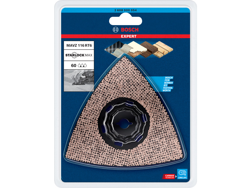Dlouhá životnost při broušení různých materiálů! Náročné broušení malých ploch kvůli odstranění starého materiálu a přípravě povrchu pro další práci může být běžnou bruskou i ručně velmi těžko proveditelné. I když máte přístup k povrchu, tyto práce zničí brusný papír. S brusným talířem EXPERT Sanding Plate se však můžete dostat do rohů a brousit obtížné materiály pomocí oscilačního multifunkčního nářadí. Hrubá, otevřená zrna RT2 (zrnitost 20) jsou nejlepší pro odstraňování malty za dlaždicemi, pro odstraňování lepidla na koberce nebo pro rašplování dřeva. RT4 (zrnitost 40) je nejlepší pro odstraňování silných vrstev barvy, ale v případě potřeby si poradí i s maltou a lepidlem. Nástroje s RT6 (zrnitost 60) jsou specialistou na barvy, zatímco s RT10 (zrnitost 100) jsou ideální pro broušení a přípravu čistých dřevěných povrchů.