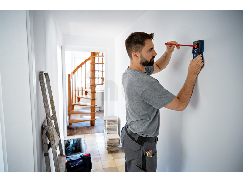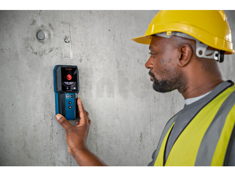 Detektor GMS 120-27, Když vrtáte do zdi, chcete mít jistotu, že nenarazíte na překážku. Detektor GMS 120-27 Professional umožňuje snadnou a intuitivní detekci objektů ve stěně. Výsledky detekce se zobrazují indikací signálu na displeji a barvy vyznačovacího otvoru. Snadno použitelný detektor nabízí jednoduchou volbu režimu a přes příslušný otvor si můžete přesně označit místo, kde byly předměty detekovány. Robustní GMS 120-27 byl vyvinut na náročná pracoviště a pyšní se ochranou IP 54 proti prachu a stříkající vodě s pryžovým krytem tlumícím nárazy. Náš detektor GMS 120-27 Professional vám pomáhá detekovat a lokalizovat kovy, vodiče pod napětím a dřevěné kolíky. Lokalizace objektů ve stěně před vrtáním zajišťuje větší bezpečnost při práci, a to zejména pro řemeslníky při renovačních pracích, při věšení skříněk, kuchyňských linek, umyvadel, bojlerů a topných soustav nebo při montáži klimatizace či protipožárních systémů. Tento detektor identifikuje střed detekovaného objektu a uvádí také jeho materiálové charakteristiky, například zda se jedná o magnetický, nebo nemagnetický kov, vodič pod napětím, nebo nekovový materiál. Taška; 2× baterie 1,5 V LR6 (AA)