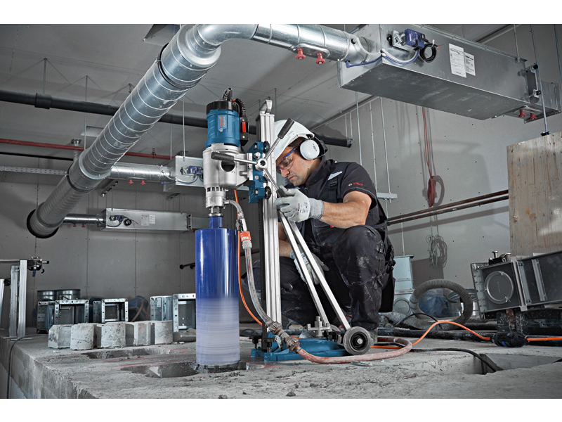 - Motor 3 200 W a třístupňová převodovka pro jádrové vrtání otvorů až 350 mm do armovaného betonu,