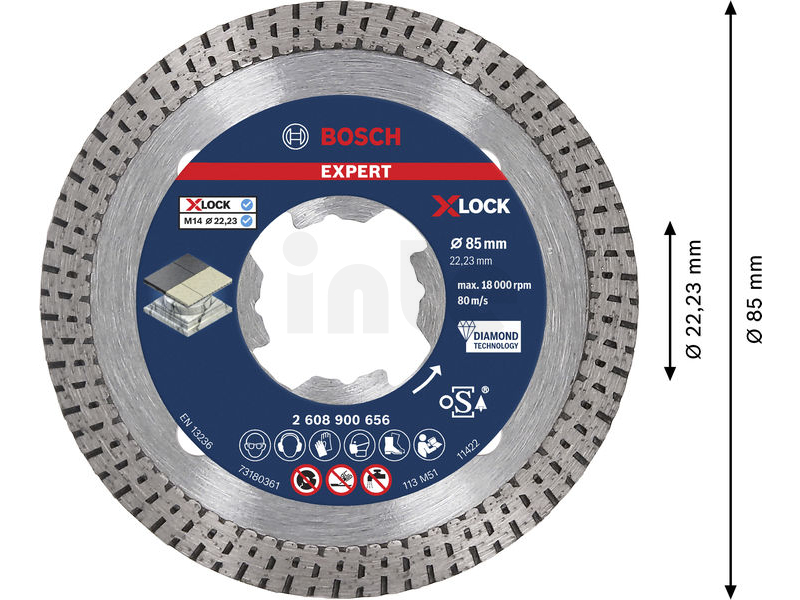 BOSCH Diamantový dělicí kotouč EXPERT HardCeramic X-LOCK 85 × 22,23 × 1,6 × 7 mm 2608900656