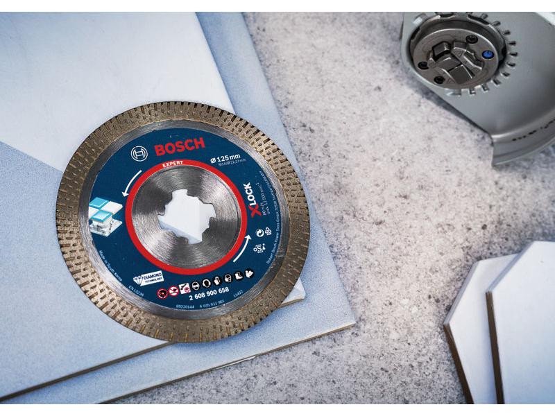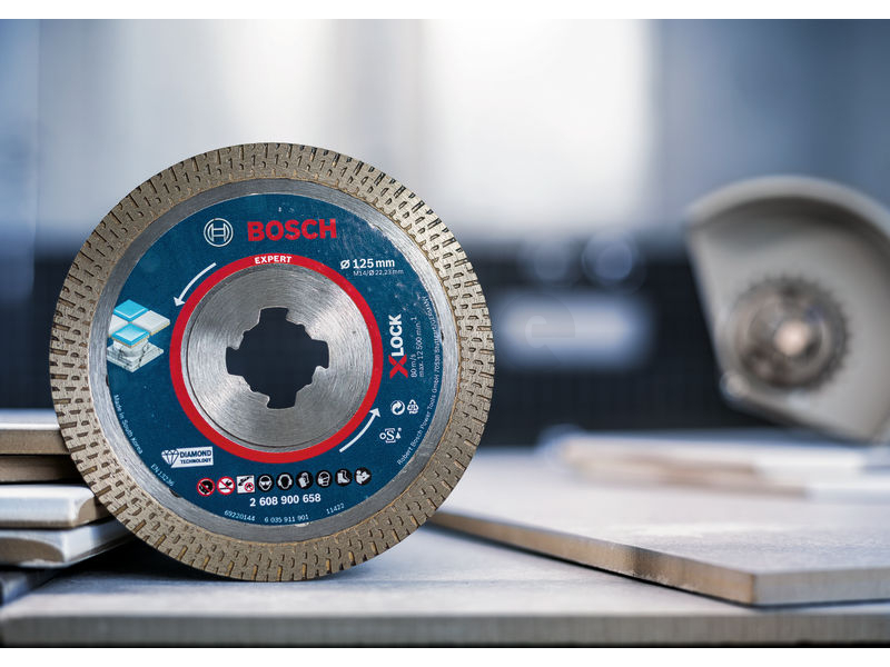 Vysoce přesné řezání tvrdých dlaždic! Dlaždice používané v moderním stavebnictví jsou často velké, velmi tvrdé a drahé. Vysoce kvalitní řezání bez jakýchkoli chyb je proto zásadní, ale velmi obtížné. Řezný kotouč EXPERT HardCeramic na dlaždice využívá technologii Diamond Technology a řadu konstrukčních prvků, které trvale dosahují nejlepších výsledků, a to i u nejtvrdší keramiky. Diamantový řezný kotouč Bosch EXPERT HardCeramic X-LOCK na dlaždice je pro řezání tvrdých dlaždic nejlepší. S tímto diamantovým dělicím kotoučem se můžete spolehnout na profesionální výsledky každé své práce.