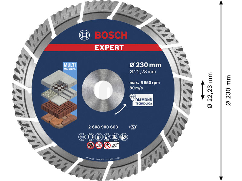 BOSCH Diamantový dělicí kotouč EXPERT MultiMaterial 230 × 22,23 × 2,4 × 15 mm 2608900663