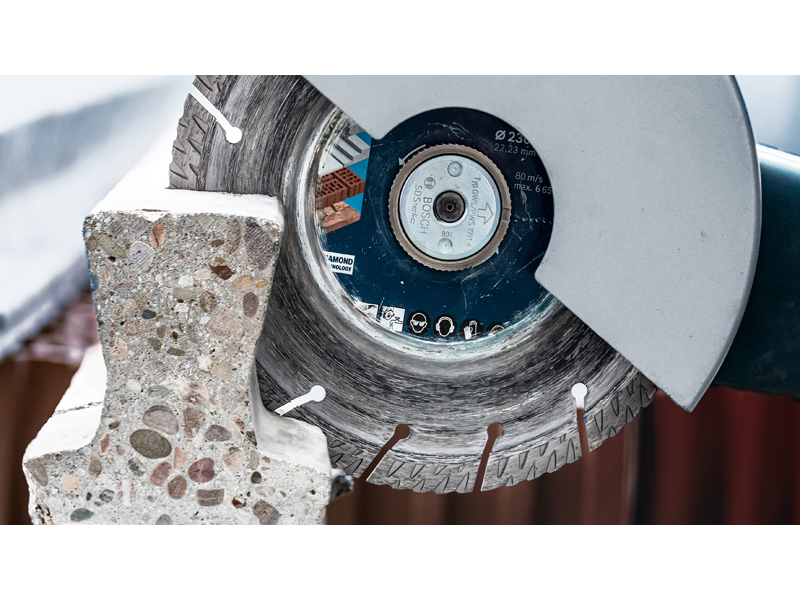 Dlouhá životnost pro řezání stavebních materiálů! Na moderních stavbách je třeba řezat širokou škálu tvrdých materiálů a ty si na nářadí vybírají svou daň. Kotouč EXPERT MultiMaterial je ideálním příslušenstvím pro zaneprázdněné stavební profesionály, kteří potřebují řezat beton, cihly, střešní tašky a železobeton – protože jednoduše vydrží pracovat déle. Tato kombinace optimálních diamantových zrn a pokročilého designu znamená, že diamantový řezný kotouč Bosch EXPERT MultiMaterial nabízí bezkonkurenční životnost. Řeže dokonce spolehlivě déle než jiné diamantové kotouče Bosch, což v konečném důsledku poskytuje vysokou hodnotu.