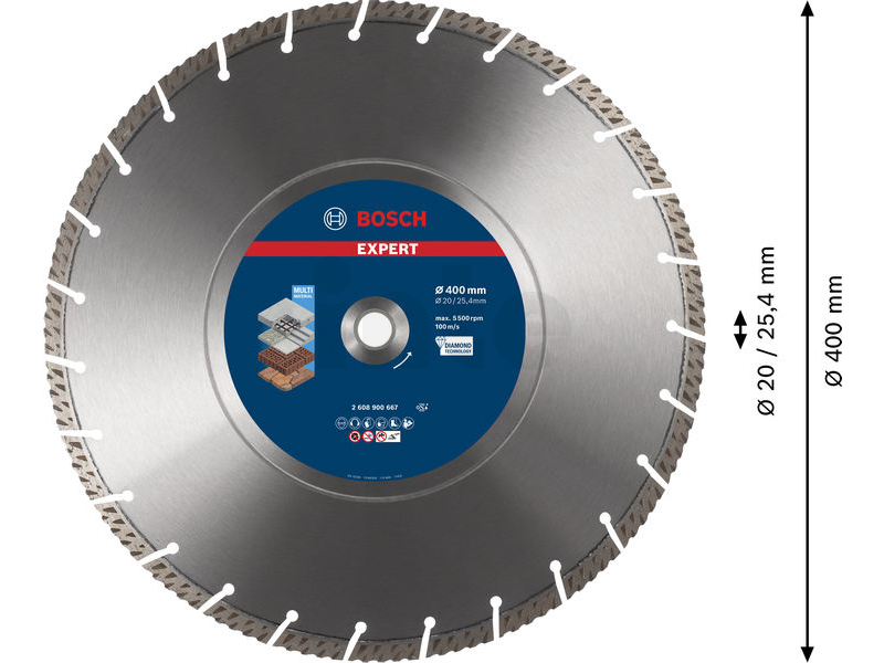 BOSCH Diamantový dělicí kotouč EXPERT MultiMaterial 400 × 20/25,40 × 3,3 × 12 mm 2608900667