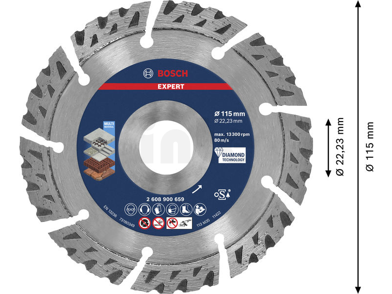BOSCH Diamantový řezný kotouč EXPERT MultiMaterial 115 × 22,23 × 2,2 × 12 mm 2608900659