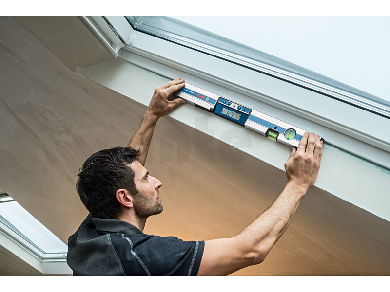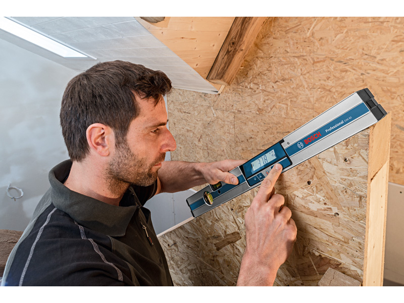 Digitální vodováha GIM 60, Přesná digitální vodováha, Měří přesně sklony ve stupních, procentech nebo milimetrech/metrech, Směrové šipky a akustické signály při 0° a 90° pro jednoduché vyrovnávání, Automatické otáčení naměřených hodnot na displeji při práci nad hlavou,