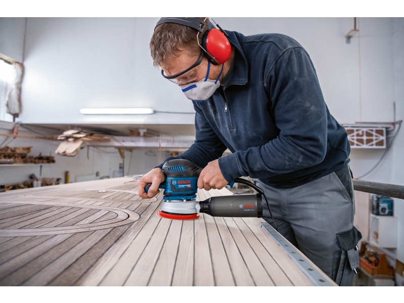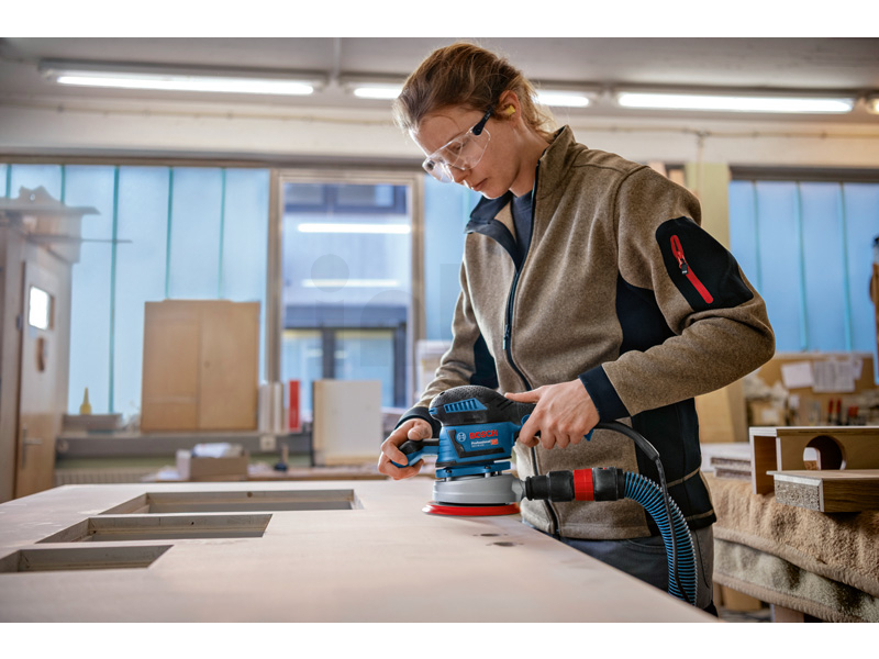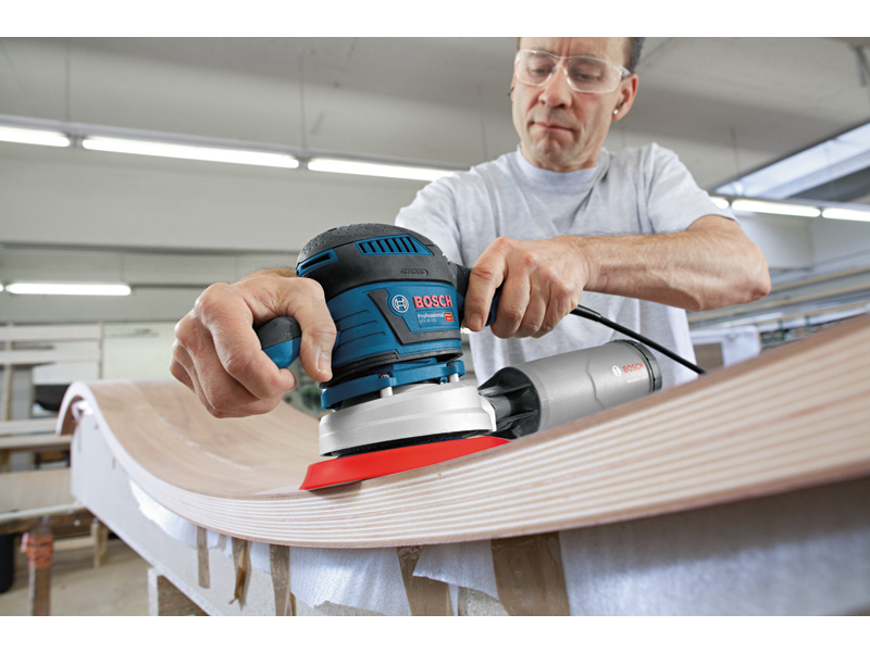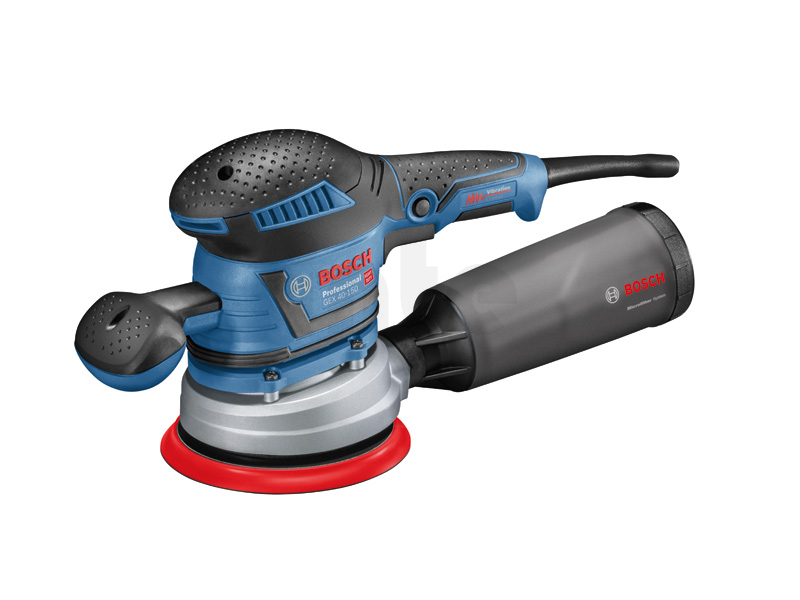 Excentrická bruska GEX 40-150, GEX 40-150 Professional je kabelová excentrická bruska Bosch navržená pro vysoký výkon při profesionálních povrchových úpravách v kategorii 150 mm. Oddělená konstrukce motoru a brusné jednotky pro stálý přítlak a poskytuje nejkvalitnější výsledky práce. Její jedinečné tlumení vibrací produkuje velmi nízké vibrace, což umožňuje nepřetržitou práci. Předvolba rychlosti umožňuje různé aplikace s různými materiály. Tato excentrická bruska je určena k broušení, mezibroušení, odstraňování laku, dokončování povrchů a leštění. Je použitelná na dřevo, dýhu, lak a plnivo, minerální i akrylové. Je kompatibilní se systémem odsávání prachu Bosch Click & Clean. GEX 40-150 je také vybavena boxem na prach s vestavěným systémem Bosch Micro Filter, multiděrovanou brusnou desku pro ideální odsávání prachu, upevněním brusných papírů pomocí suchého zipu a systémem Vibration Control pro pohodlnou práci s nízkou hladinou vibrací.