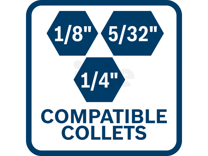 - 3× upínací kleština 3,17 mm (1/8″) / 3,96 mm (5/32″) / 6,35 mm (1/4″) (2 608 000 826);