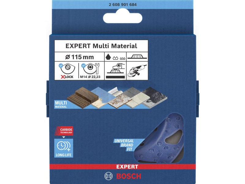 BOSCH Karbidový hrncový kotouč EXPERT Multi Material, hrubý, plochý, X-LOCK, 115 mm, 22,23 mm 2608901684