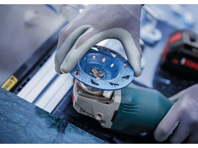Dlouhá životnost při broušení různých materiálů! Při práci s úhlovou bruskou a hrncovým kotoučem nemůžete vidět postup práce, pokud se na chvíli nezastavíte. Díky nové otevřené konstrukci umožňuje robustní karbidový hrncový kotouč EXPERT Multi Material sledovat materiál během broušení. To znamená, že můžete pracovat s menším počtem přerušení a efektivněji provádět renovační a dekorační práce. Karbidový hrncový kotouč EXPERT Multi Material využívá Carbide Technology od firmy Bosch, která zajišťuje jeho mimořádnou odolnost a dostatečnou pevnost při různých aplikacích a materiálech. Můžete jej použít k odstranění starého nátěru z dřevěných okenních rámů a palubních desek a také zkosit hrany ocelových desek a keramických dlaždic.