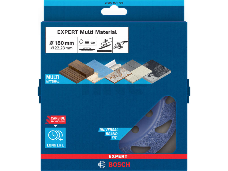 BOSCH Karbidový hrncový kotouč EXPERT Multi Material, středně hrubý, šikmý, 180 mm, 22,23 mm 2608901750