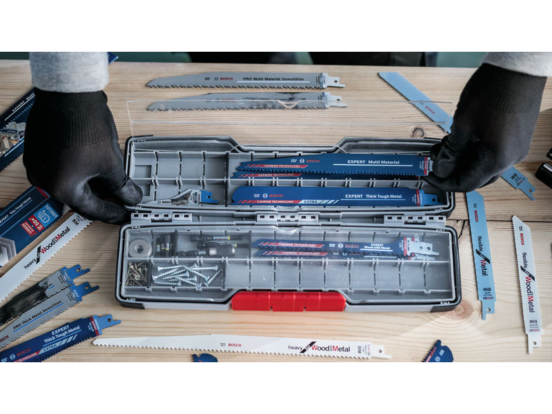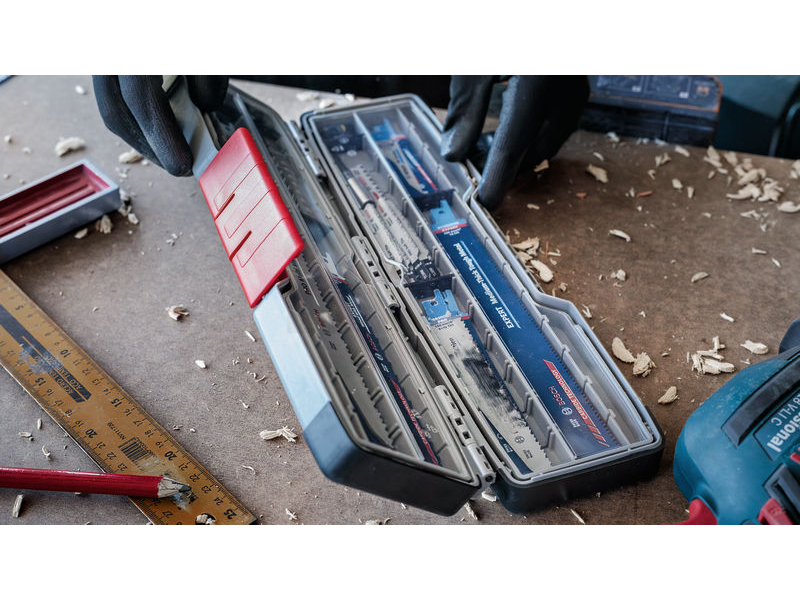 Robustní řešení pro skladování a manipulaci s nářadím! Aby mohli ze svého elektrického nářadí vytěžit maximum, potřebují profesionálové dobrou sadu listů a vrtáků. Toto pouzdro PRO Tough Box jsme navrhli tak, aby mohli sady svého nářadí bezpečně a efektivně skladovat i přenášet. Pouzdra PRO Tough Box jsou robustní a navržená tak, aby se příslušenství, jako jsou pilové listy, během přepravy neotupily ani nepoškodily. Pouzdra rovněž zajišťují zaneprázdněným profesionálům maximální efektivitu tím, že uspořádají příslušenství způsobem, který usnadňuje výběr požadovaného listu či vrtáku.