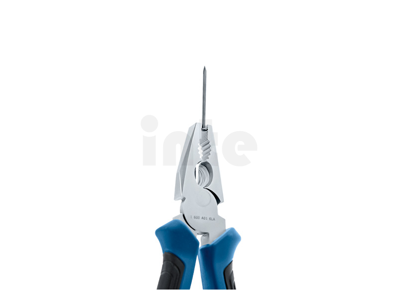 Kleště Univerzální kleště, Kombinované kleště Bosch Professional jsou vyrobeny z vysoce pevné chrom-vanadiové oceli se speciálně kalenými břity pro dlouhou životnost. Optimalizovaná konstrukce s vysokým pákovým efektem vyžaduje při stříhání až o 30 % méně námahy než u standardních kleští a díky měkké gumové rukojeti a protiskluzovým hranám je používání kleští pohodlné a bezpečné, zejména při práci jednou rukou.