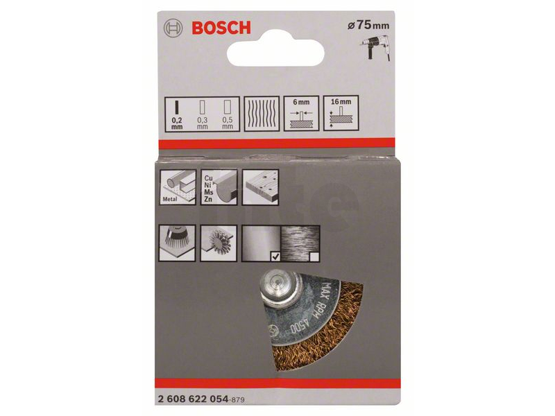 BOSCH Kotoučový drátěný kartáč, zvlněný drát, 75×0,2 mm, mosazný povrch 2608622054