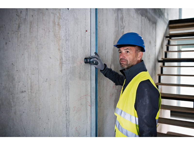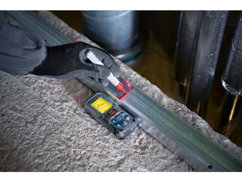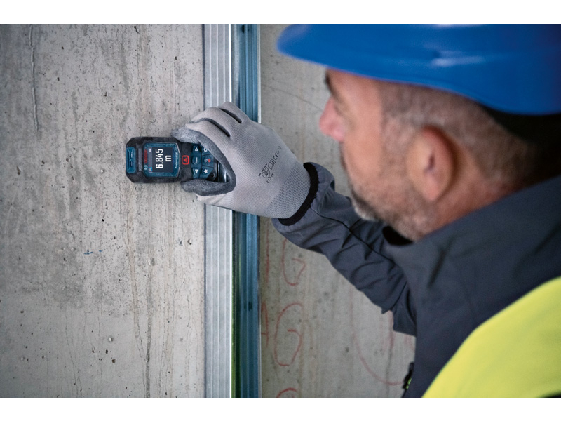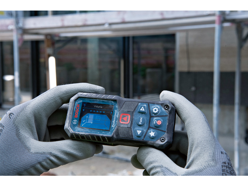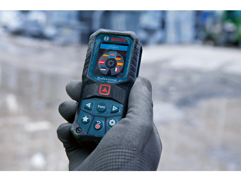 Laserový měřič vzdálenosti GLM 50-22, GLM 50-22 Professional ustojí drsné podmínky na staveništi. Konstrukce se stupněm krytí IP 65 poskytuje naprostou ochranu před prachovými částicemi a stříkající vodou. Kryt pohlcující nárazy zase přináší ochranu při pádu z výšky 1,5 m i na tvrdý beton. S přizpůsobitelným tlačítkem lze definovat oblíbené funkce měření či nastavení. Intuitivní uživatelské rozhraní podporuje 30 jazyků a sestává z barevného displeje a režimu velkých čísel pro lepší čitelnost. Pro bezproblémové používání je vybaven novou funkcí nápovědy, která zobrazuje všechny možnosti měření. Je ideální pro elektrikáře, vzduchotechniky a instalatéry na umisťování a připevňování prvků na dřevěné, klasické či sádrokartonové konstrukce. Při dokončovacích pracích se perfektně hodí malířům, podlahářům, obkladačům či truhlářům na výpočet potřebného množství materiálu. Dlouhá doba chodu bez ohledu na to, zda se používají alkalické baterie, nebo volitelný Li-ion akumulátor. Ochranné pouzdro; Nosné poutko; 2× baterie 1,5 V LR6 (AA)