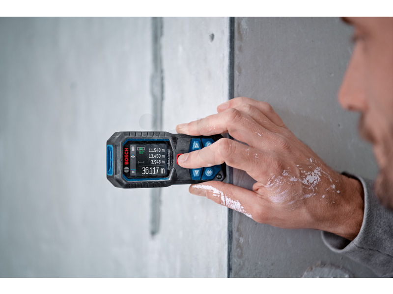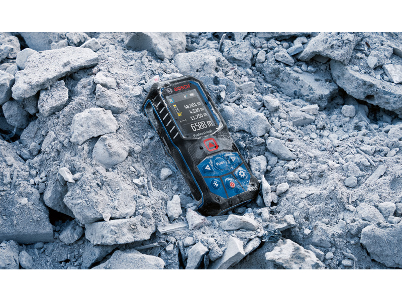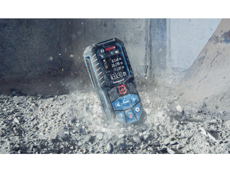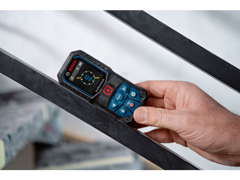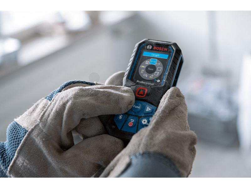 Laserový měřič vzdálenosti GLM 50-27 C, Laserový měřič GLM 50-27 C Professional nabízí vysoce odolný design, který odolává drsným podmínkám a umožňuje rychlou dokumentaci a snadné použití. Jeho design s certifikací ochrany IP65, který je ideální pro náročná pracoviště, je vybaven krytem pohlcujícím nárazy a odolává pádům z výšky 1,5 metru i na tvrdý beton. Díky rychlému přenosu dat přes připojení Bluetooth® a aplikaci MeasureOn od společnosti Bosch nebyla dokumentace výsledků měření nikdy jednodušší. Intuitivní ovládání zajišťuje inteligentní uživatelské rozhraní s mnoha užitečnými funkcemi, jako je špičkový barevný displej a praktická funkce nápovědy. Ideální pro dokumentaci, výpočet potřeb materiálu, prostorů a stěn a umístění montážních prvků, je bezkonkurenční volbou pro architekty, elektrikáře a mnoho dalších profesí. Dodává se se zvýšenou výdrží akumulátoru (ve srovnání s předchůdcem GLM 50 C Professional) a se zvukovou a vibrační zpětnou vazbou k ověření úspěšnosti měření. Ochranné pouzdro; Nosné poutko; 2× baterie 1,5 V LR6 (AA)