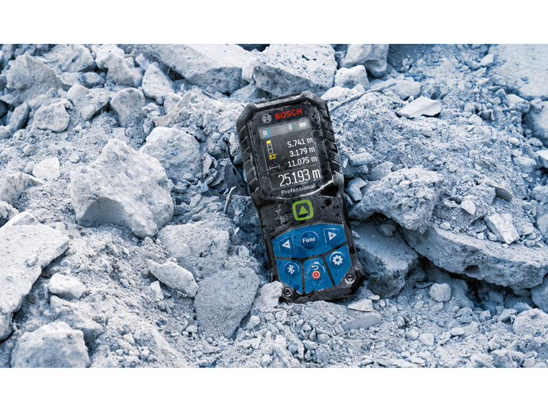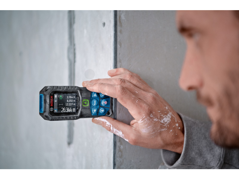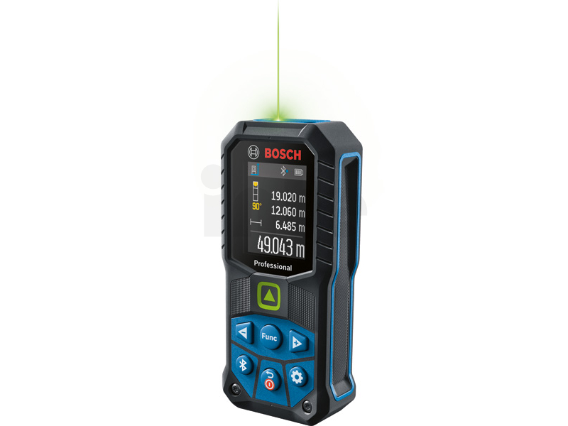 Laserový měřič vzdálenosti GLM 50-27 CG, Laserový měřič GLM 50-27 CG Professional nabízí vynikající viditelnost laserového bodu, vysoce odolný design a rychlá dokumentace. Jeho zelený laserový bod je ve srovnání s červeným laserem viditelnější, proto je obzvláště vhodný pro měření na velké vzdálenosti ve světlých vnitřních podmínkách. Díky kombinaci konstrukce s certifikací ochrany IP65 a pryžového krytu tlumícího nárazy, vydrží i pád z 1,5 metru i na tvrdý beton, proto je vhodný i do drsných podmínek staveniště. Připojení Bluetooth® a aplikace Bosch MeasureOn zajišťují rychlou dokumentaci a bleskový přenos výsledků měření. Tento laserový měřič je optimální pro dokumentaci, výpočet potřeb materiálu, prostorů a stěn a umístění montážních prvků, takže je ideální pro architekty, elektrikáře a mnoho dalších profesí. Je vybaven zvukovou i vibrační zpětnou vazbou, která ověřuje úspěšnost měření a vylepšenou výdrží akumulátoru (ve srovnání s předchůdcem GLM 50 C Professional). Ochranné pouzdro; Nosné poutko; 2× baterie 1,5 V LR6 (AA)