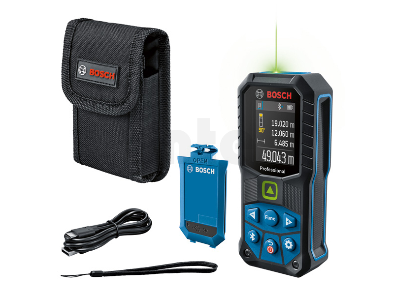 Laserový měřič vzdálenosti GLM 50-27 CG, Laserový měřič GLM 50-27 CG Professional nabízí vynikající viditelnost laserového bodu, vysoce odolný design a rychlá dokumentace. Jeho zelený laserový bod je ve srovnání s červeným laserem viditelnější, proto je obzvláště vhodný pro měření na velké vzdálenosti ve světlých vnitřních podmínkách. Díky kombinaci konstrukce s certifikací ochrany IP65 a pryžového krytu tlumícího nárazy, vydrží i pád z 1,5 metru i na tvrdý beton, proto je vhodný i do drsných podmínek staveniště. Připojení Bluetooth® a aplikace Bosch MeasureOn zajišťují rychlou dokumentaci a bleskový přenos výsledků měření. Tento laserový měřič je optimální pro dokumentaci, výpočet potřeb materiálu, prostorů a stěn a umístění montážních prvků, takže je ideální pro architekty, elektrikáře a mnoho dalších profesí. Je vybaven zvukovou i vibrační zpětnou vazbou, která ověřuje úspěšnost měření a vylepšenou výdrží akumulátoru (ve srovnání s předchůdcem GLM 50 C Professional). Ochranné pouzdro; Nosné poutko; BA 3.7V 1.0Ah A a kabel USB-C® (1 608 M00 C43)